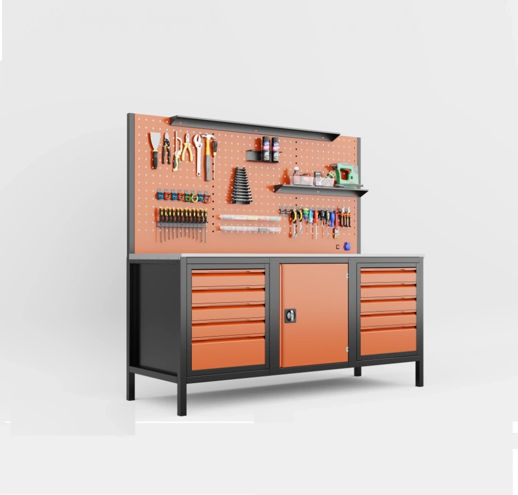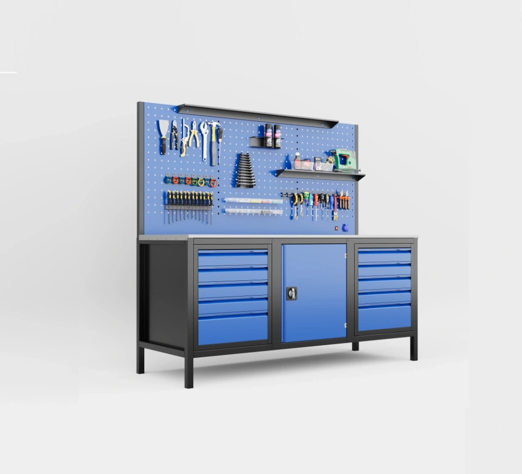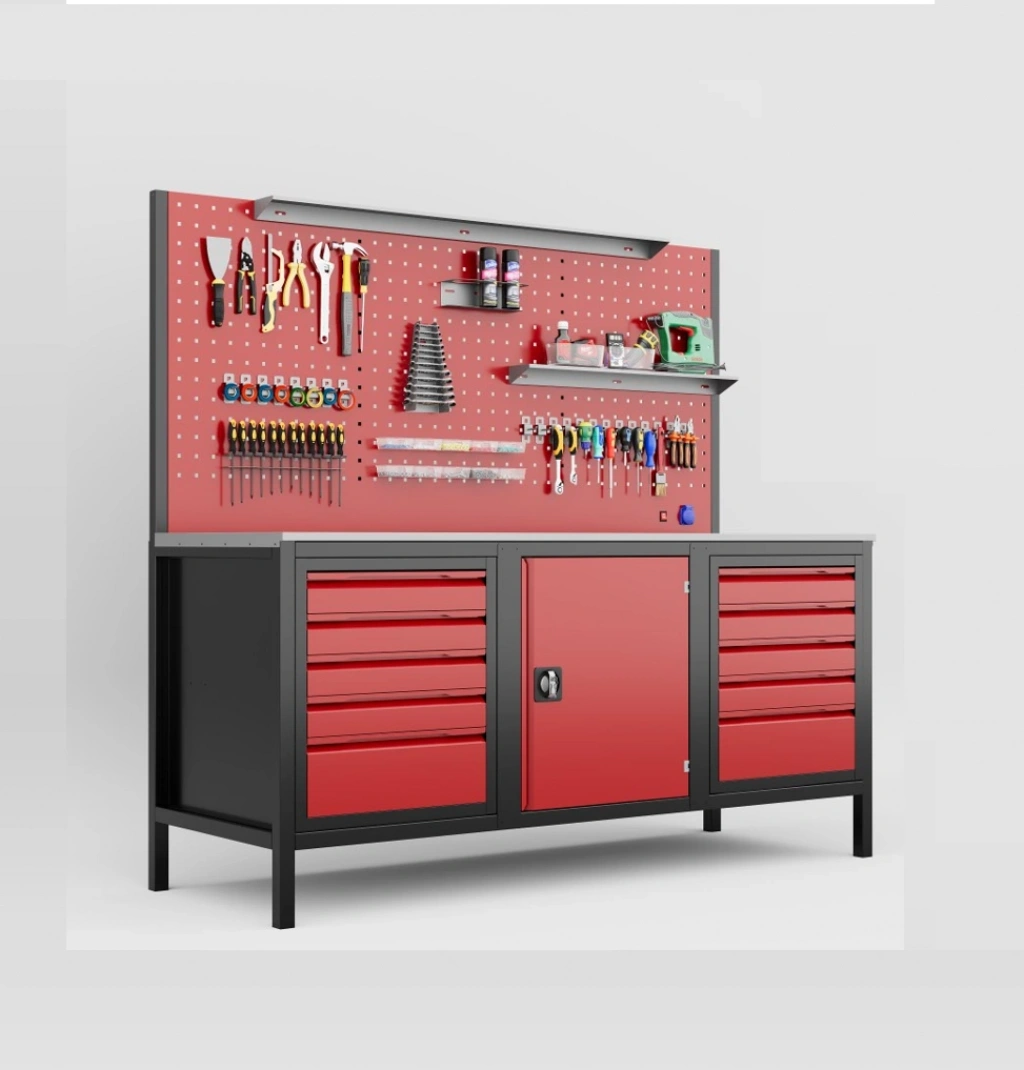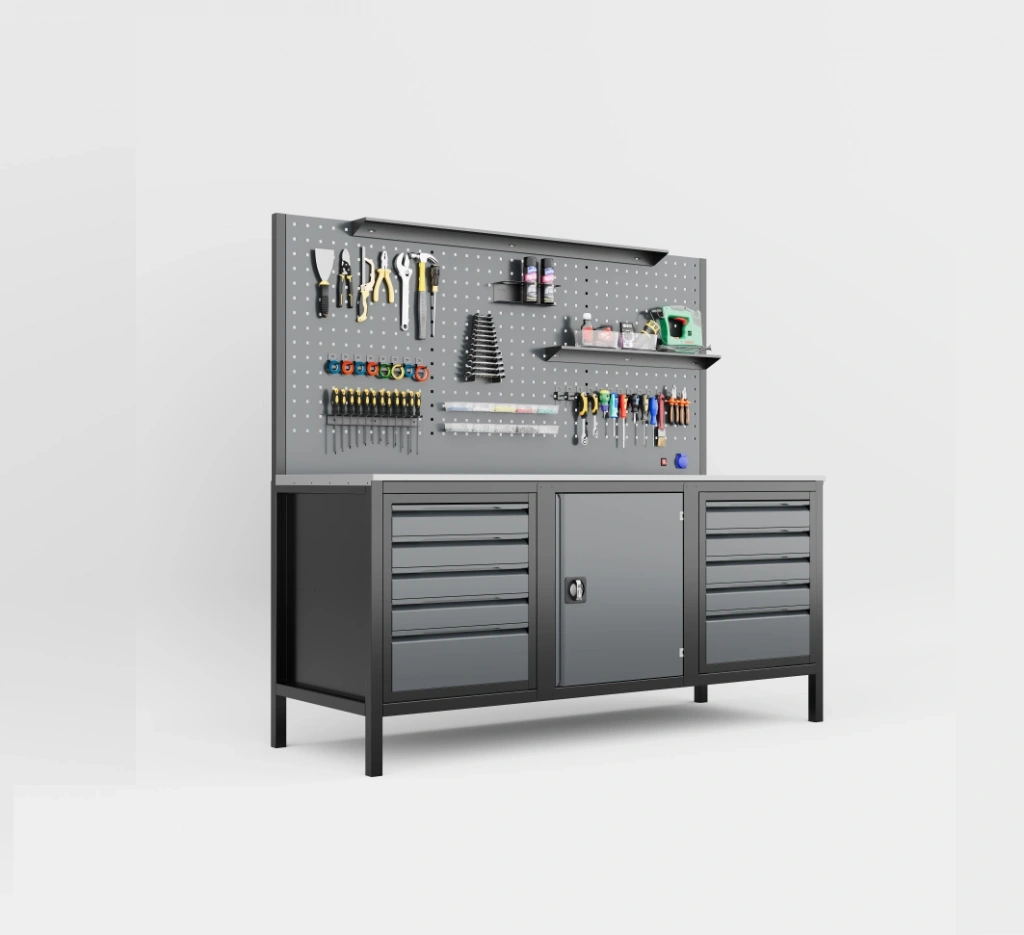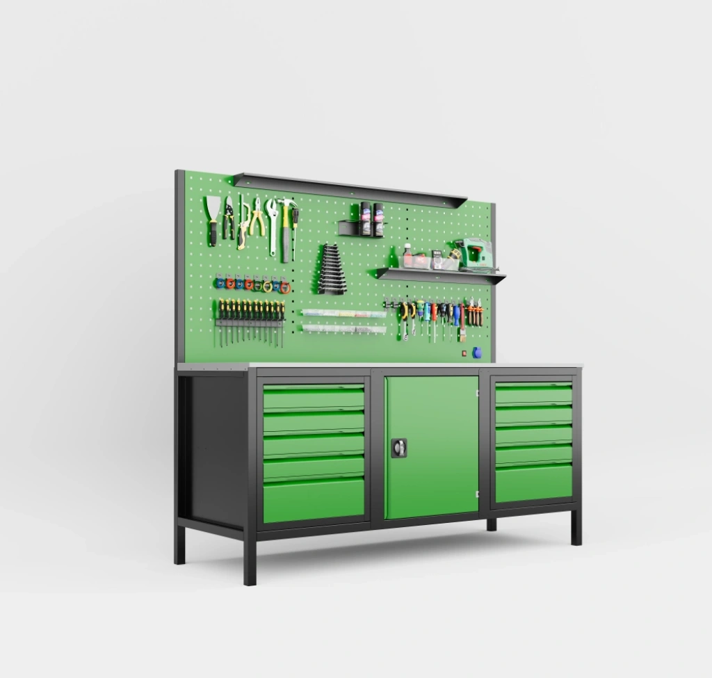 Geniş çalışma alanı ile birlikte 10 çekmeceli ve dolaplı yapısı sayesinde, yoğun ekipman kullanılan atölyelerde maksimum düzen ve verimlilik sağlar.