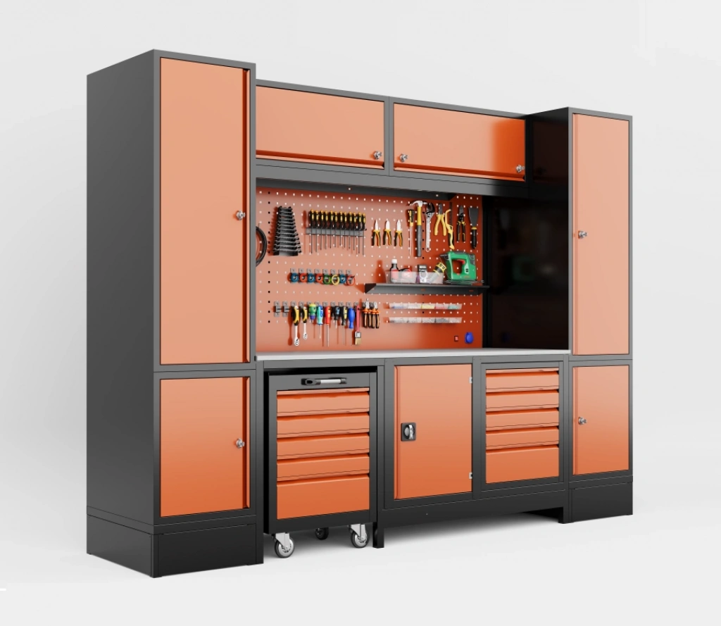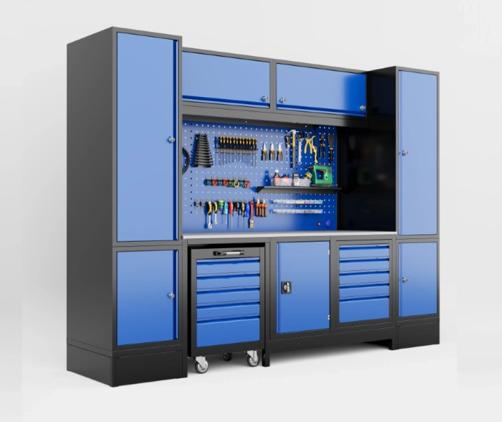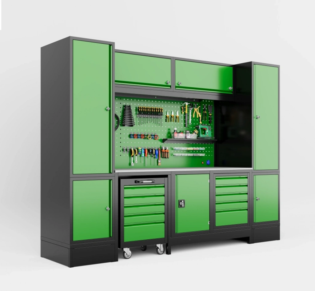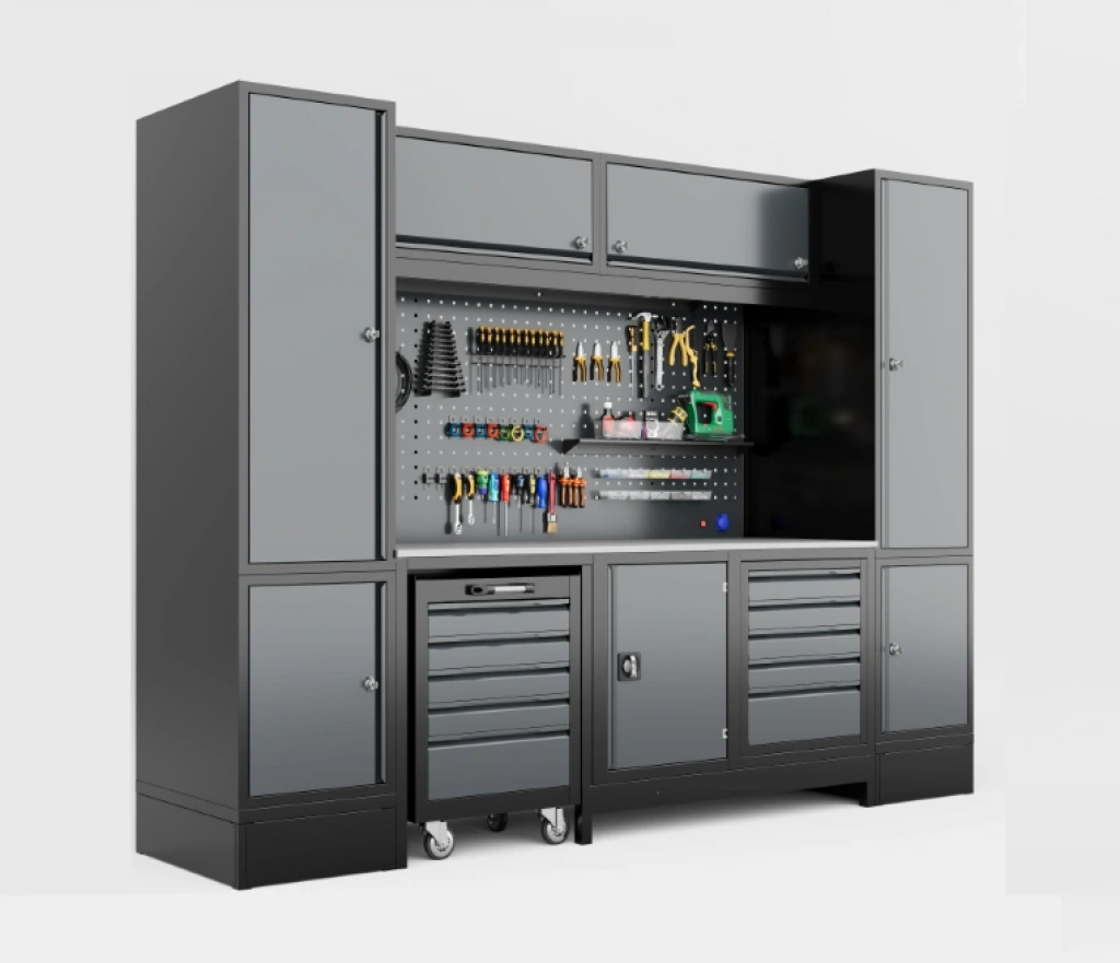 Delikli pano alanı, el aletlerinin askı aparatlarıyla görünür ve hızlı erişilebilir şekilde kullanılmasını sağlar; çalışma sırasında zaman kaybını azaltır.
