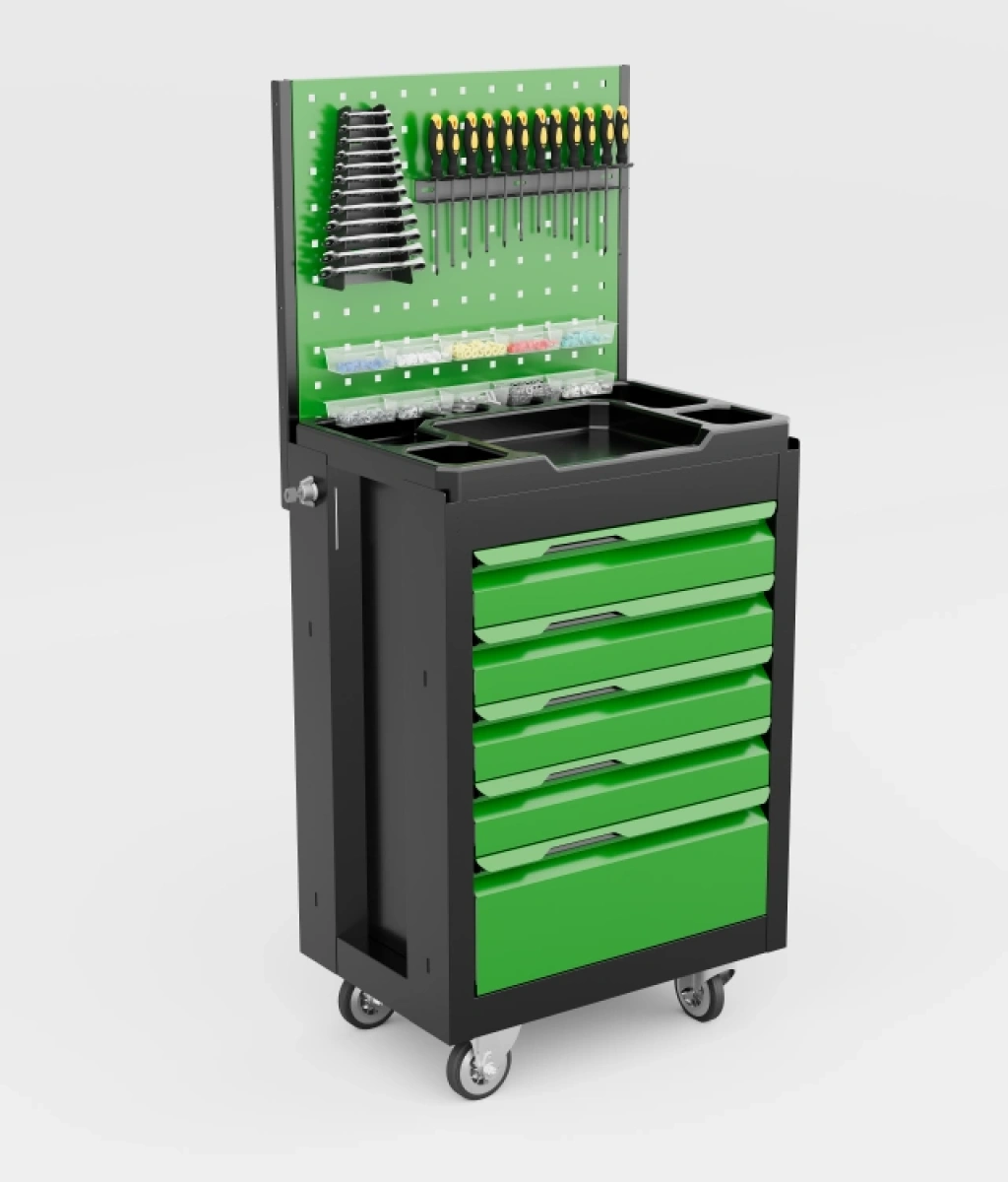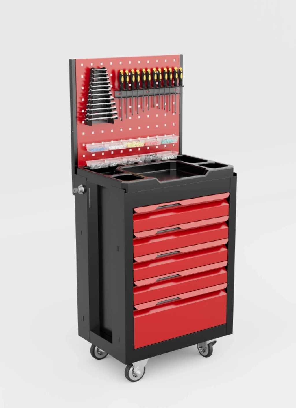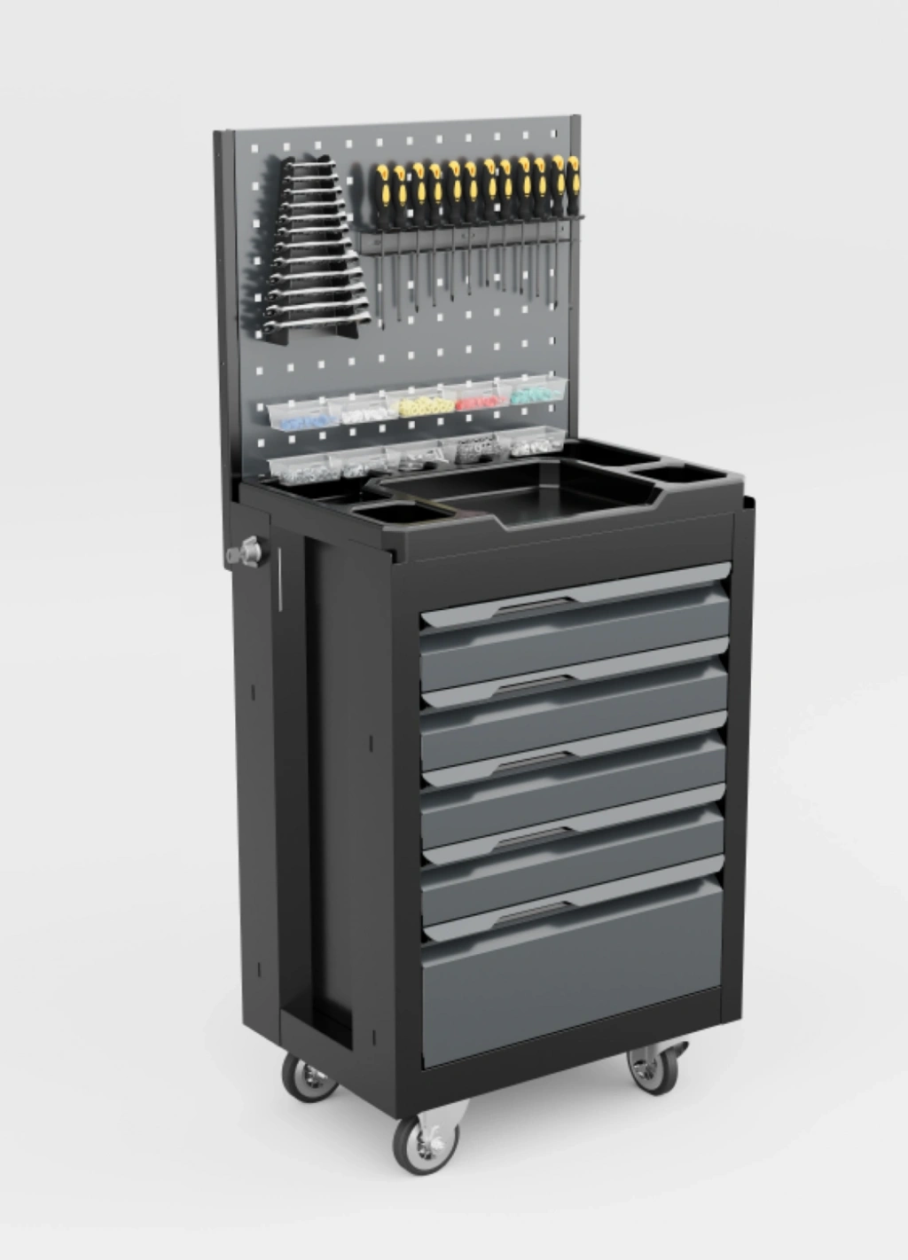 Arka kısımda asma tip delikli pano sistemi bulunmaktadır
