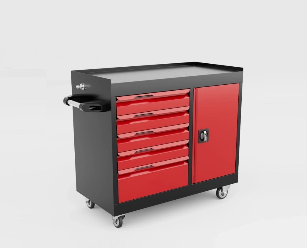 Takım arabasının yanındaki geniş dolap bölmesi, büyük hacimli aletleriniz ve kutularınız için idealdir.