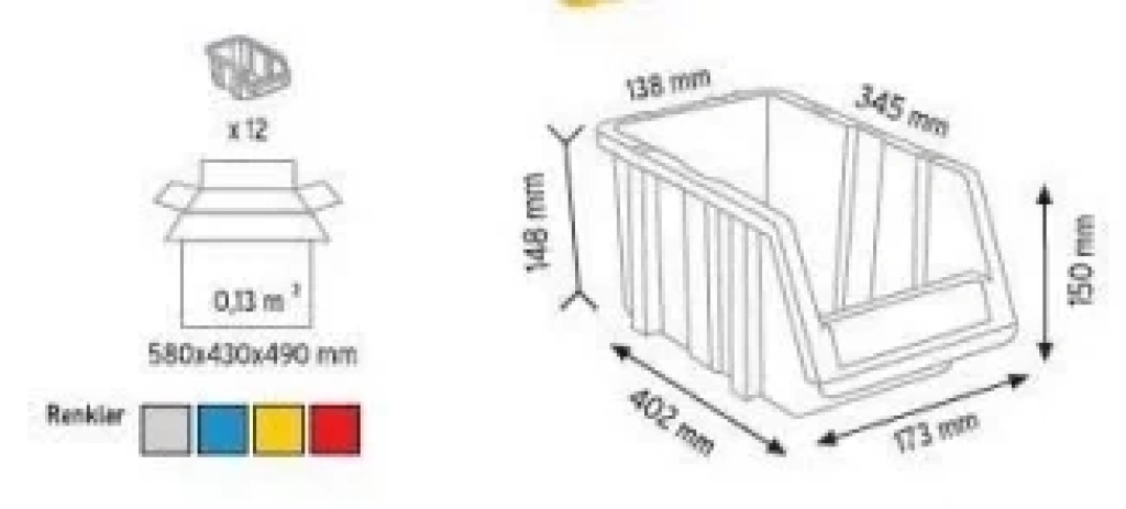 Plastik Avadanlık Kutusu Dış ölçüleri: 175 X 400 X 150 mm